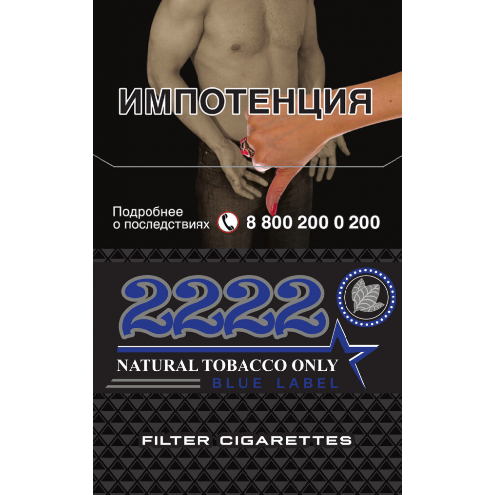 Особенностью сигарет 2222 блю лейбл является их формат King size. В каждой упаковке находится 20 сигарет с фильтром, обеспечивающими более мягкое курение. В блоке 10 пачек.